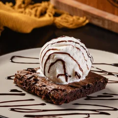 Brownie duplo com recheio de Chocolate ao leite e sorvete de Baunilha