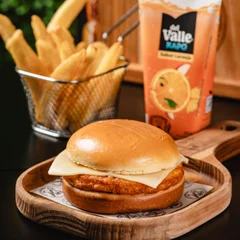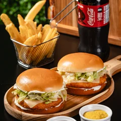 Leve e irresistível! Frango empanado 90g, queijo mussarela, alface americana e maionese defumada no pão brioche No combo são dois lanches + duas batatas individuais + refri 600ml da sua escolha CASO ADICIONAR CHEDDAR E BACON NA PORÇÃO, SELECIONE 2X PARA ADICIONAR NAS DUAS PORÇÕES